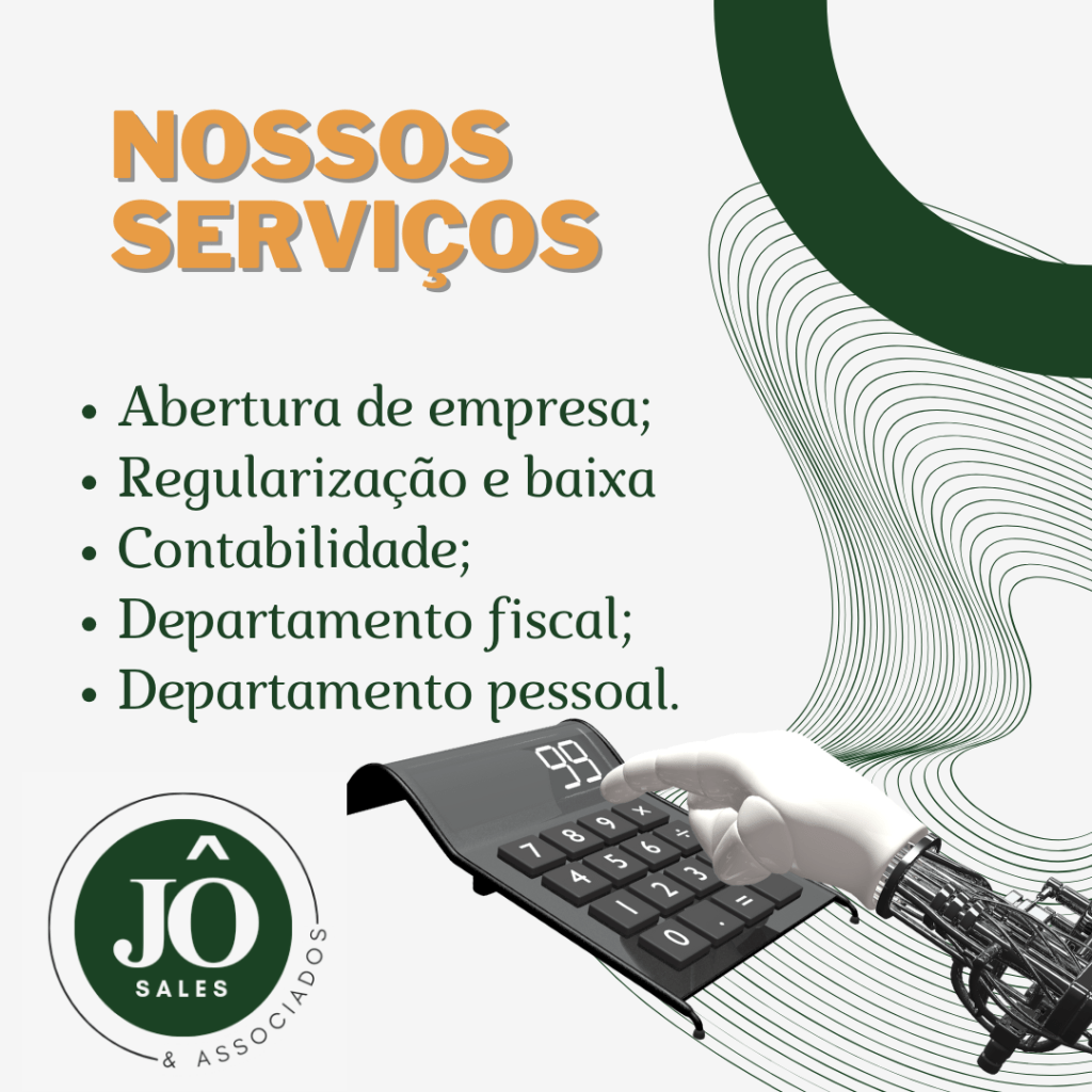 Somos a Jô Sales & Associados, profissionais em assessoria contábil, fiscal e pessoal. Abertura, regularização e baixa de CNPJ. E também, trabalhamos com E-social de colaboradores domésticos.
